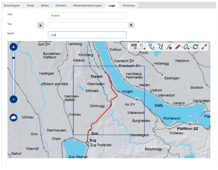 Für die Kartenbewirtschaftung steht daher ein spezieller webbasierter Karteneditor zur Verfügung. Er erlaubt das einfache Einzeichnen des Störungsverlaufs auf der Karte mit Hilfe einer Webanwendung. Stationsnamen können manuell ein- und ausgeblendet und wenn nötig in ihrer Position optimiert werden. Eine Vorschaufunktion erlaubt die Beurteilung vor Freischaltung. Die Störungsinformation kann zeitgesteuert auf den Displays ausgewählter Bahnhöfe freigeschaltet werden.